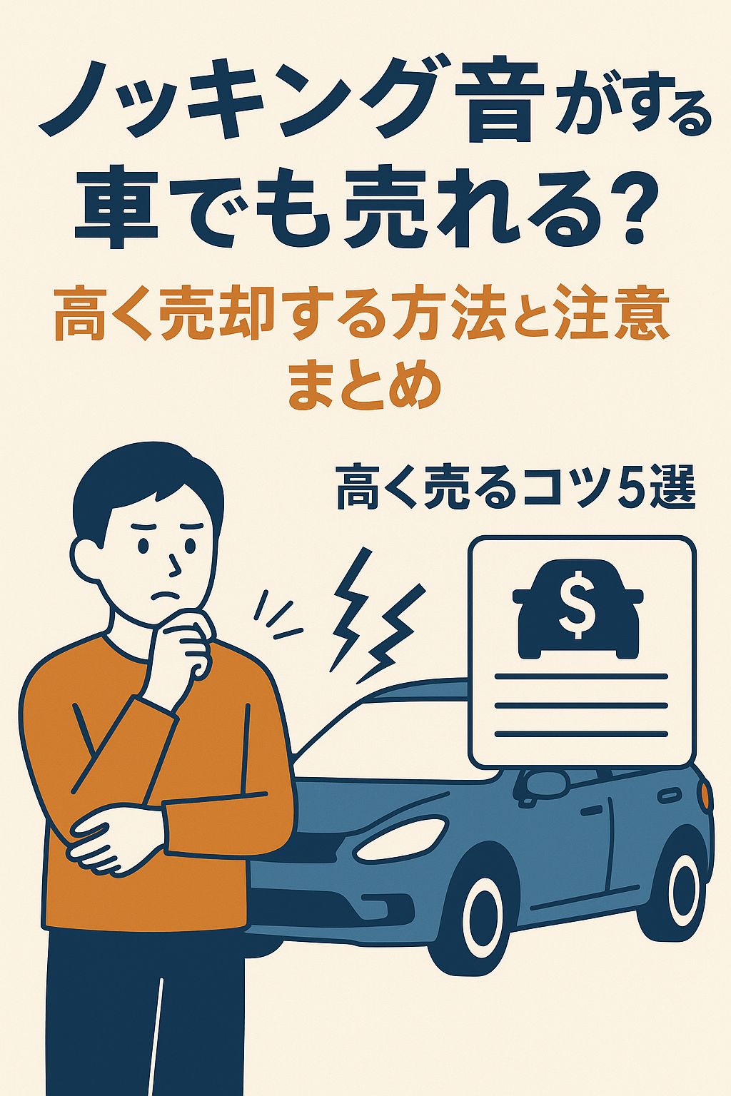 この記事を読むことで「ノッキング音がある車でも安心して売れる方法」と「少しでも高く売るコツ」がわかり、損をしない売却ができるようになりますよ。